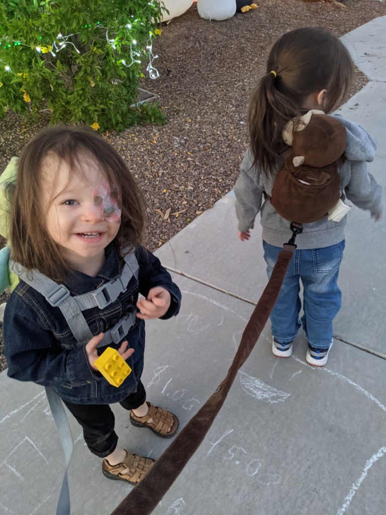 5. Take the girls for walks. I know it seems simple, but just getting out of the house for a little bit even not being around other people really helped with my mental state during this time. And the girls have started really enjoying going for our walks. In the beginning they pitched a fit every time they saw the stroller come out, but now they are really enjoying getting out of the house even just for a little bit. We let the girls walk on their own now rather than ride in a stroller, and use these backpack leashes instead to keep them from running too far ahead. They love their “tails” as they call them and ask to sleep with them regularly.